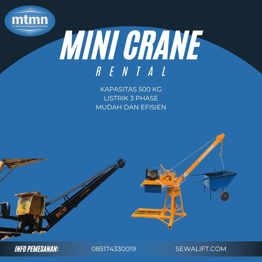 🚧 Sewa Mini Crane kapasitas 500 kg, mudah digunakan & efisien! Siap bantu angkut material proyek Anda. Hubungi 0851-7433-0019.
