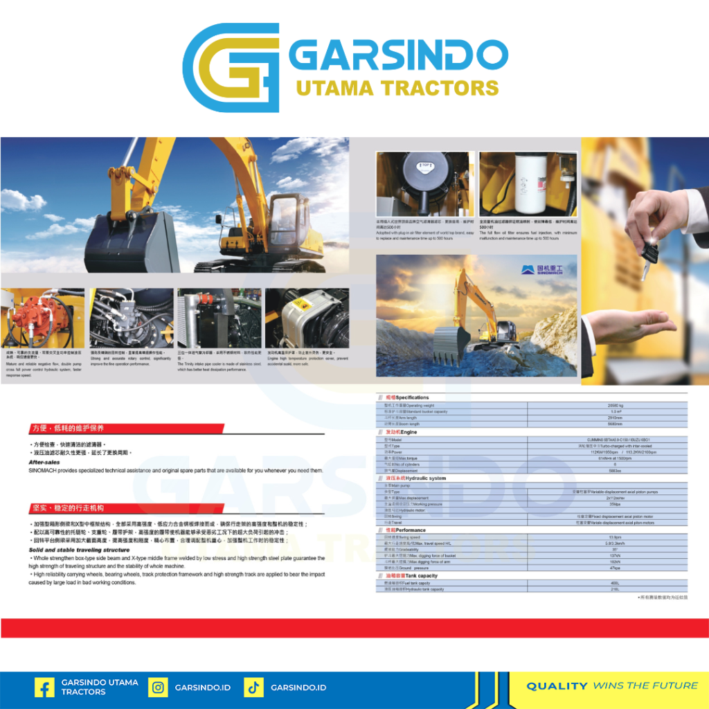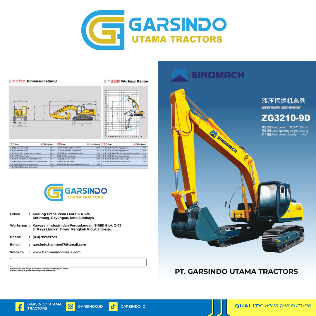 JUAL EXCAVATOR SINOMACH ZG3210-D HARGA TERBAIK TAHUN 2025 | JAWA TIMUR | GARSINDO UTAMA TRACTORS