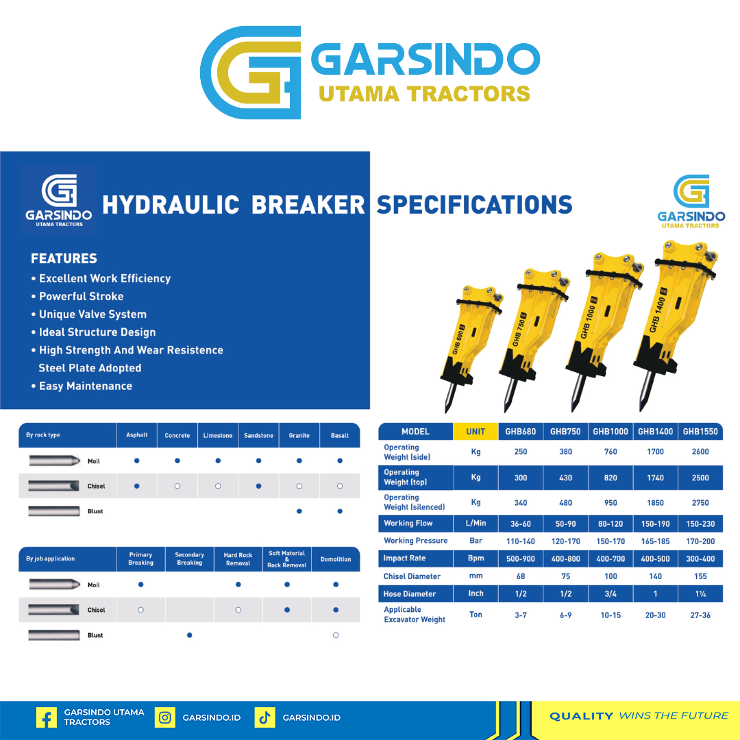 Jual Hydraulic Breaker GHB 680 di Surabaya | Garsindo Utama Tractors