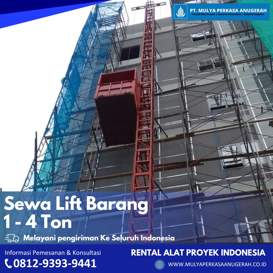 PT. MULYA PERKASA ANUGERAH - Rental Lift Barang dan Alat Proyek dengan layanan seluruh Indonesia. Salah satu produk unggulan kami adalah Lift Barang / Lift Proyek / Lift Material, di peruntukan untuk menunjang dan mengoptimalkan mobilisasi material antar lantai dalam proyek gedung bertingkat.