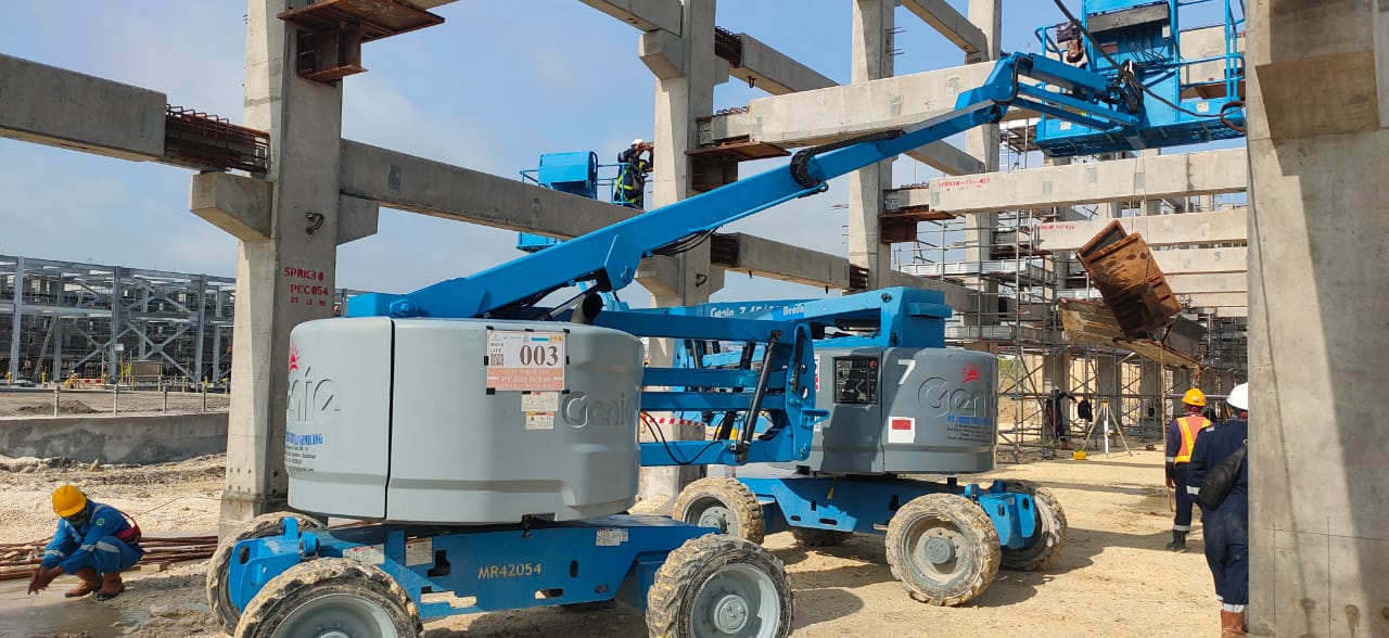 Persewaan Boom Lift / manlift terpercaya klampis bangkalan madura surabaya rental manlift murah bangkalan madura