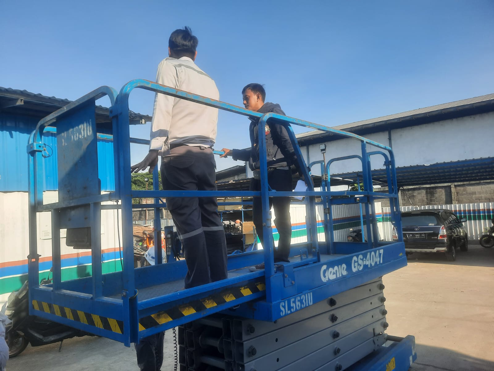 Persewaan tangga elektrik scissor lift terpercaya madura klampis bangkalan surabaya rental manlift murah madura