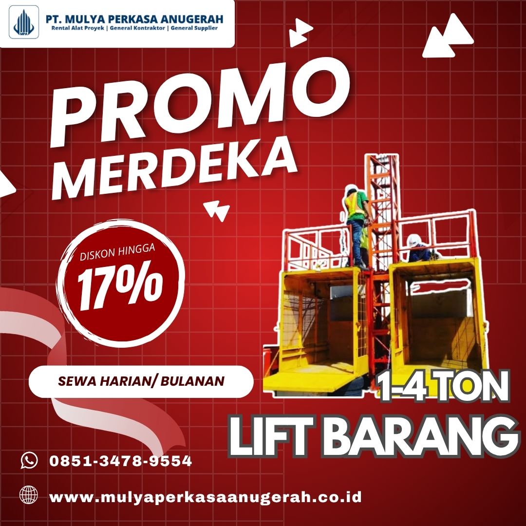 Pastikan efisiensi waktu & keselamatan kerja dengan rental lift barang berkualitas tinggi dari PT Mulya Perkasa Anugerah.