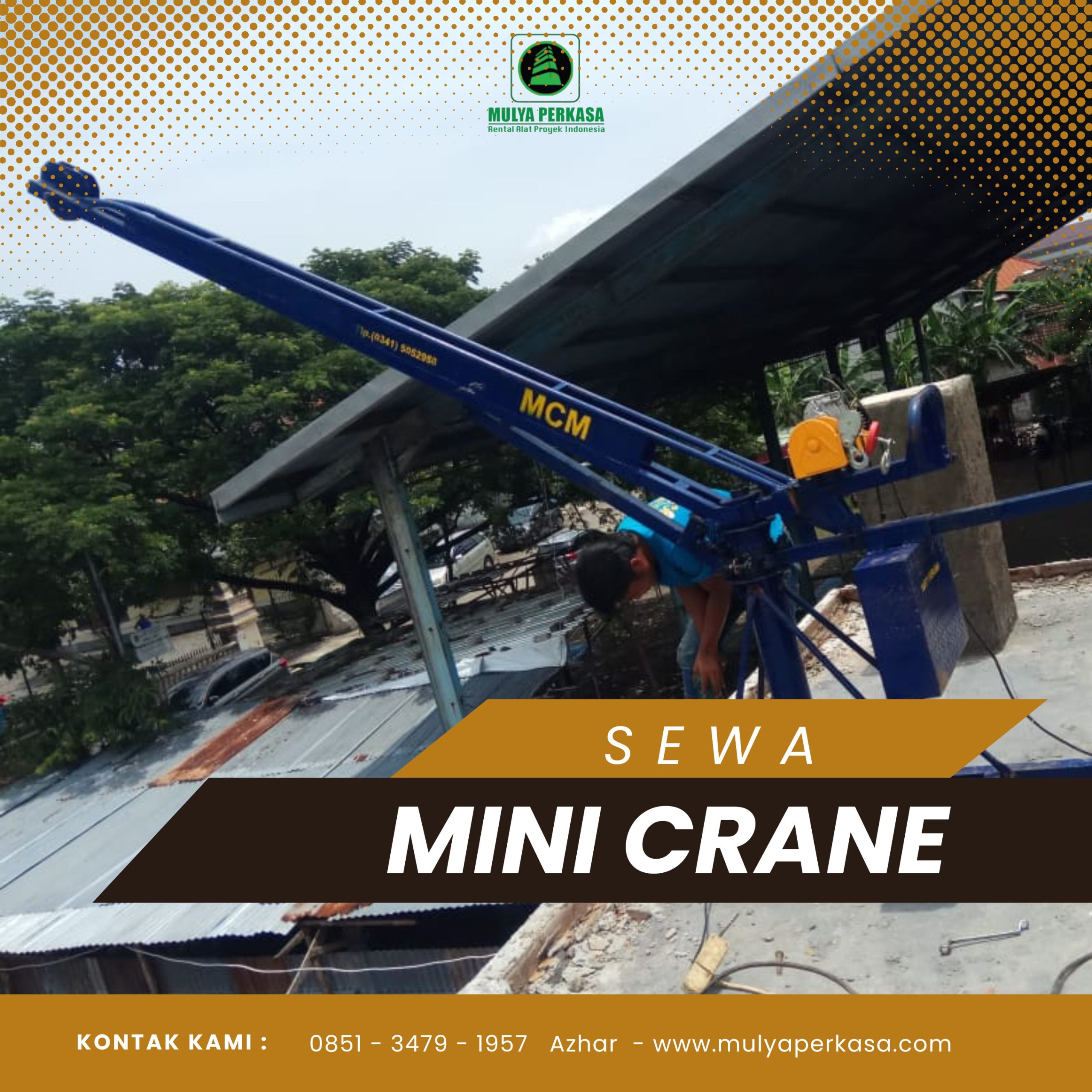 Jangan tunggu alat datang telat! Segera hubungi CV Mulya Perkasa di WA 0851-3479-1957 sekarang juga untuk mendapatkan layanan sewa mini crane Yogyakarta terbaik dan terpercaya. Kami siap mendukung proyek Anda dari awal hingga selesai!